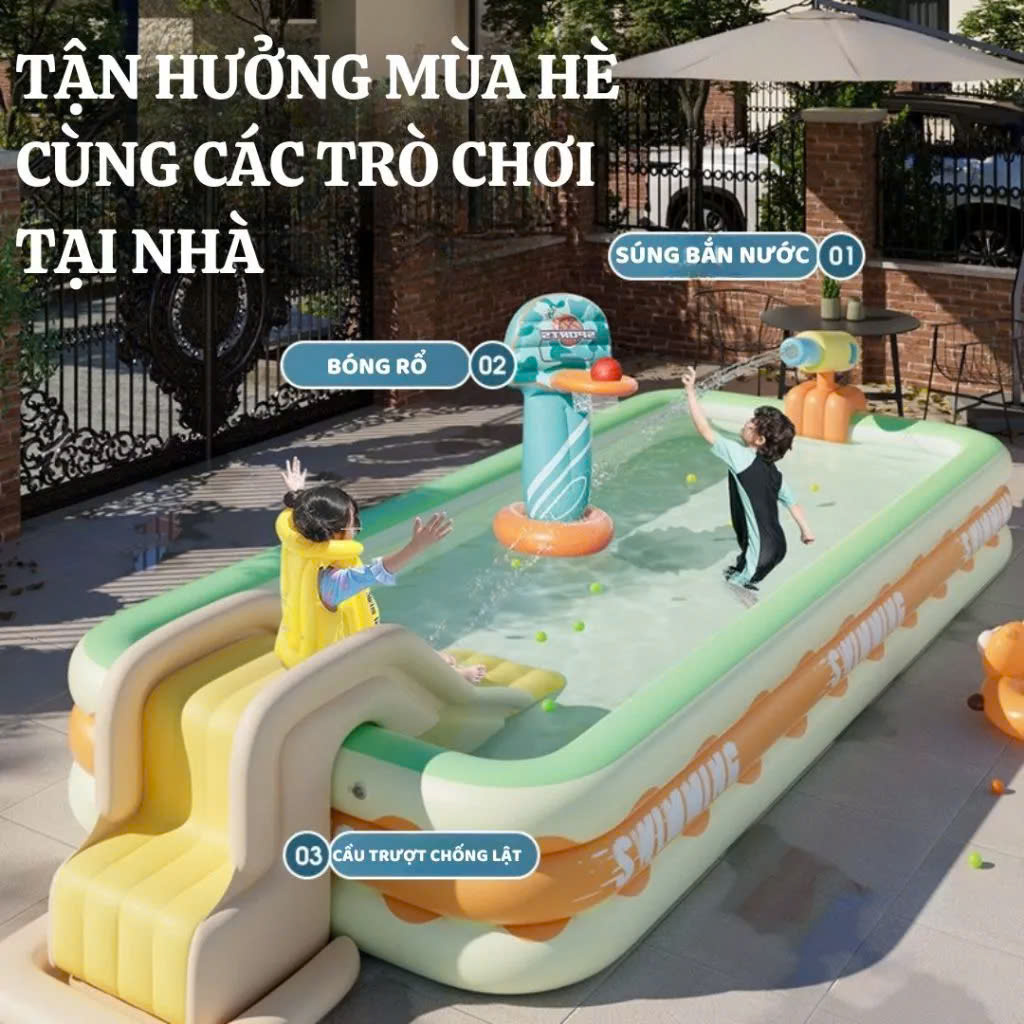 Bể bơi thành cao cho bé 3 tầng hồ phao trẻ em bơm hơi tại nhà chống trượt bền bỉ an toàn cho bé
