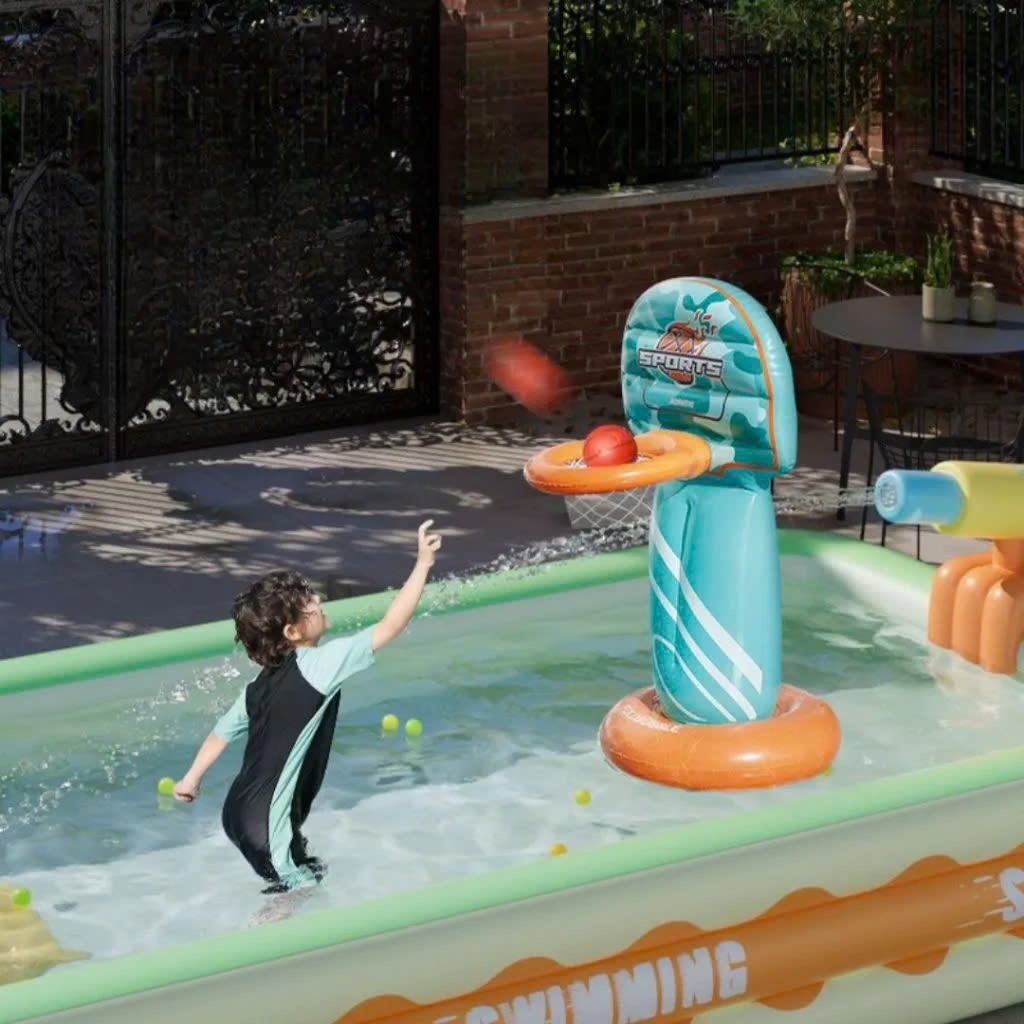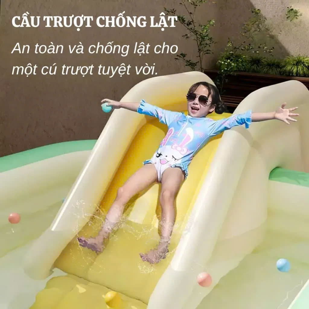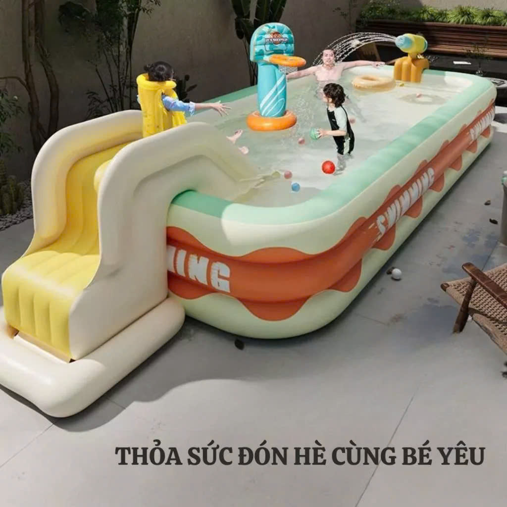 – Bể bơi có kích thước rộng rãi, cho bé yêu nhà bạn thoải mái chơi đùa cùng làn nước mát ngay tại nhà.
