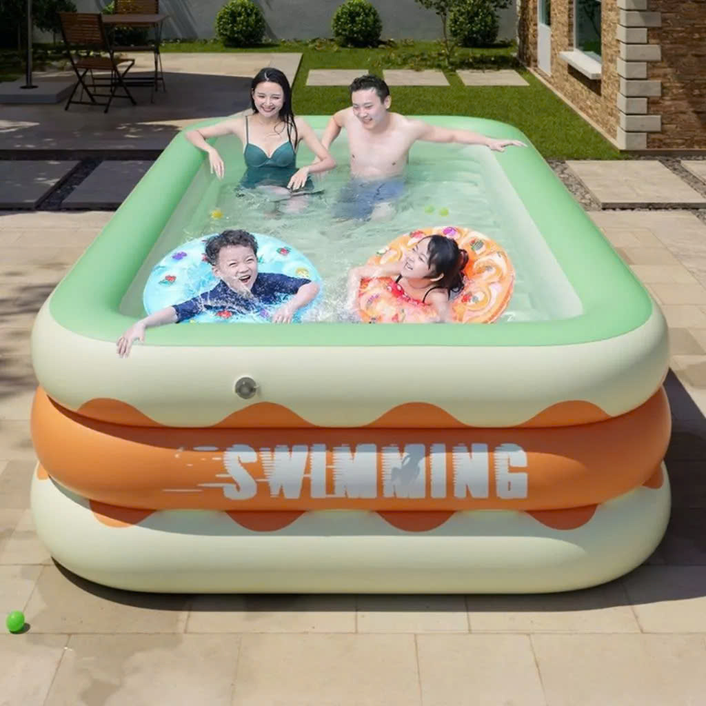 – Bể bơi phao chữ nhật cho bé thỏa thích chơi tại nhà trong mùa hè nóng bức.