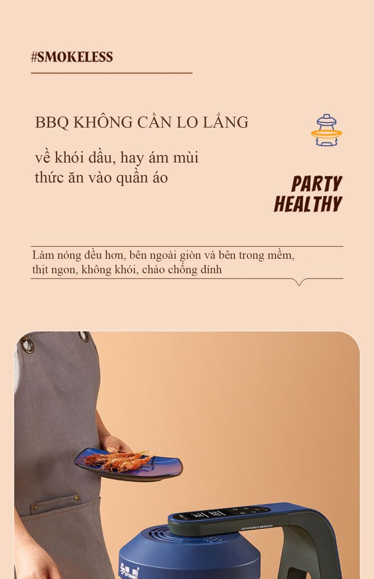 Bếp nướng điện không khói công nghệ hồng ngoại, điều khiển cảm ứng, nướng nhanh chín, dễ vệ sinh