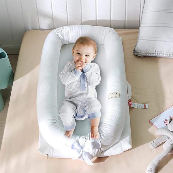 – Ba mẹ có thể đặt bé trong đệm, đưa xuống sàn chơi, ra ghế sofa, ra cạnh cửa sổ phơi nắng, đưa đi picnic…