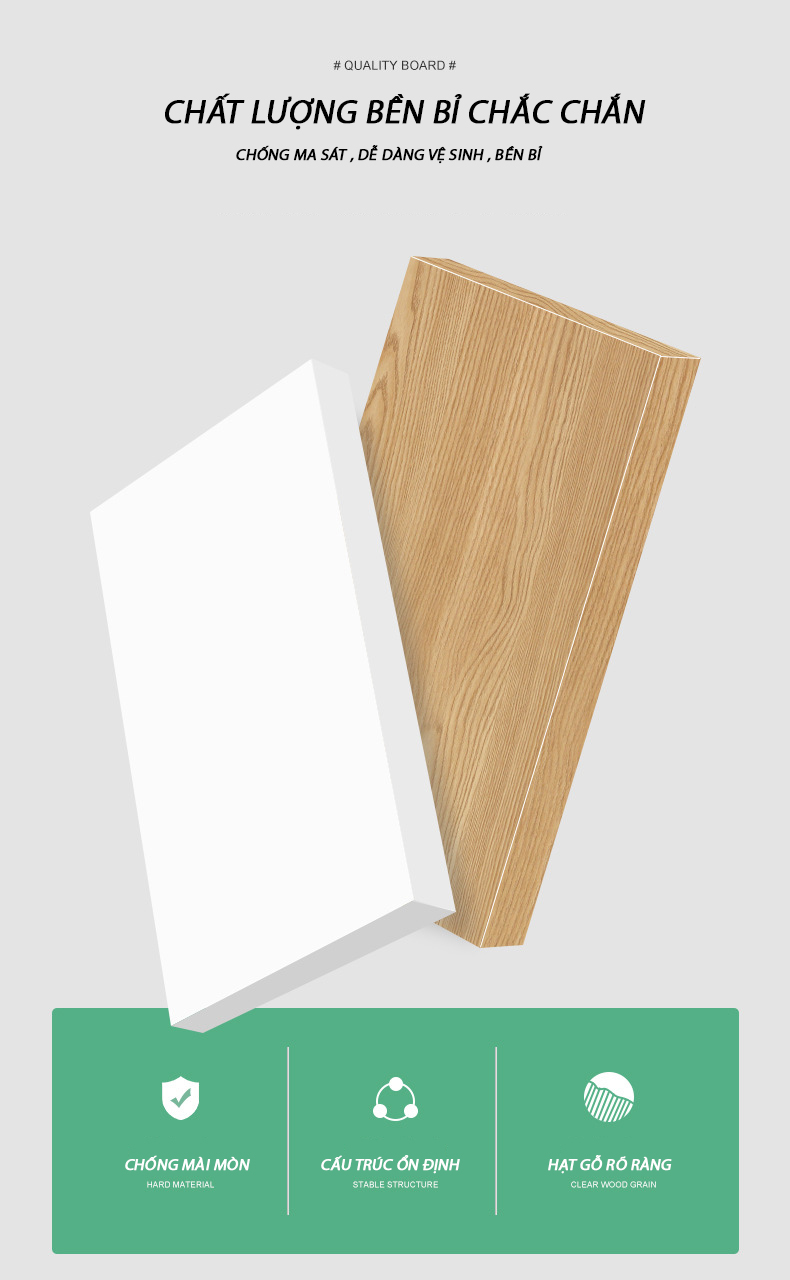 - Chất liệu: Gỗ công nghiệp chống ẩm cao cấp