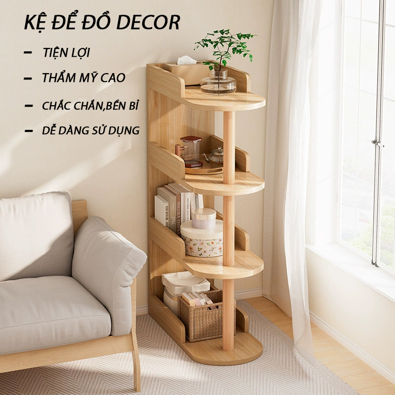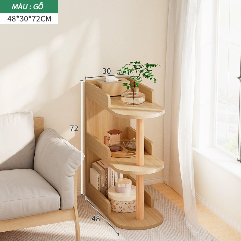 Với thiết kế nhiều tầng, kệ giúp tận dụng tối đa không gian lưu trữ. Bạn có thể sử dụng để đặt sách, cây cảnh, đèn ngủ, điện thoại, đồ trang trí, hộp đựng đồ và nhiều vật dụng khác một cách gọn gàng và tiện lợi.