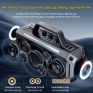 Loa Karaoke Công Suất Lớn 300W CLAISON – 7 Loa 3 Phân Tần, 2 Micro UHF, Pin 7200mAh, Bluetooth 5.3, Chống Nước IPX4