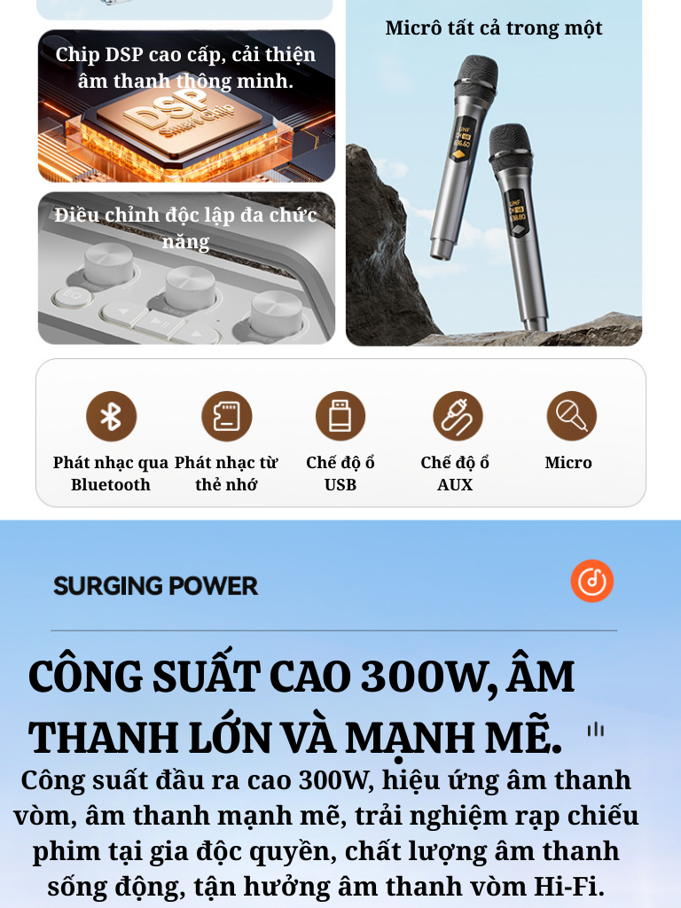 Chip DSP xử lý âm thanh chuyên nghiệp, hát karaoke chuẩn phòng thu.