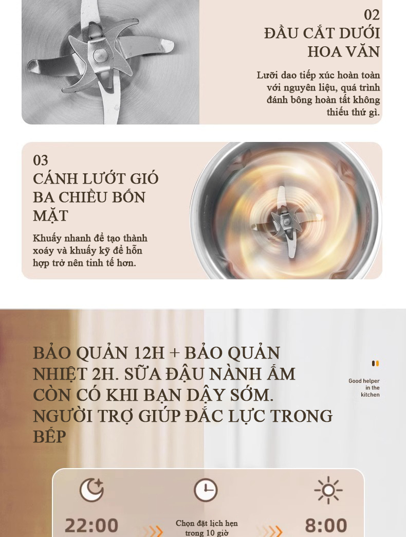 👉Máy nhỏ gọn, năng lượng lớn, xay mềm mịn
