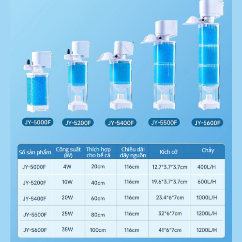 - Tự Do Kết Hợp Vật Liệu Lọc: Dễ dàng tùy chỉnh vật liệu lọc theo nhu cầu, giúp máy hoạt động hiệu quả và phù hợp với từng loại bể cá.