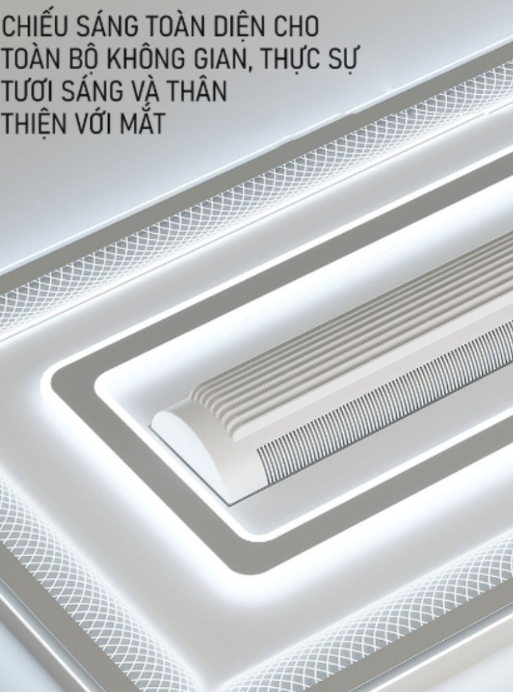 - Dài 50 x Rộng 50 x Cao 13 cm – Công suất 65W, phù hợp với phòng có diện tích nhỏ và vừa.