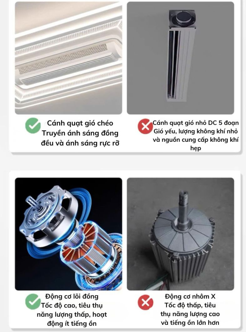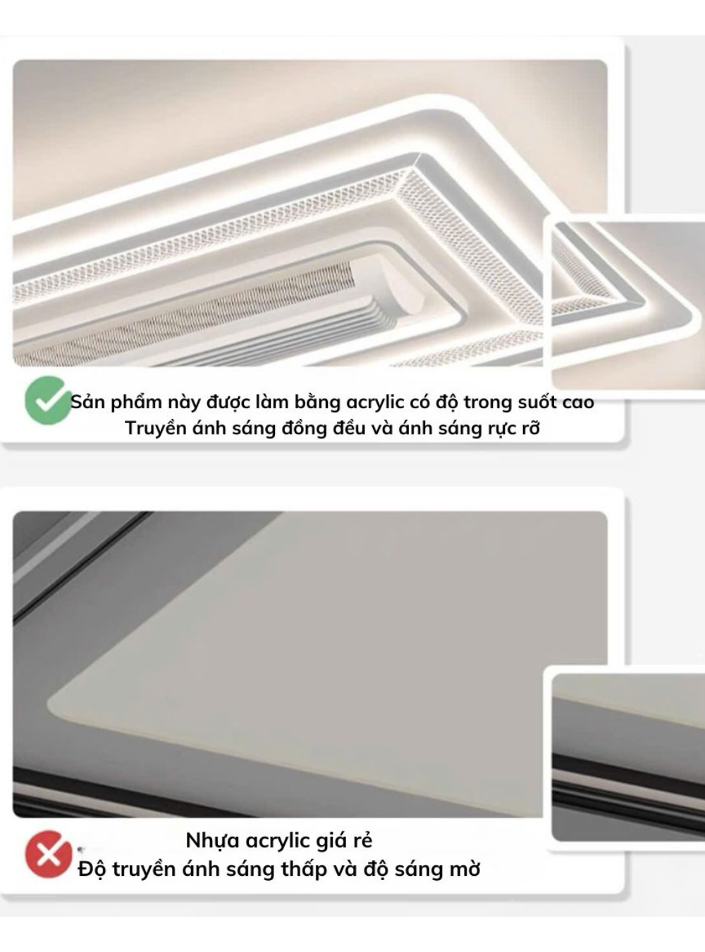 - Thiết kế hiện đại: Tích hợp quạt và đèn trong cùng một sản phẩm, tiết kiệm không gian tối đa.