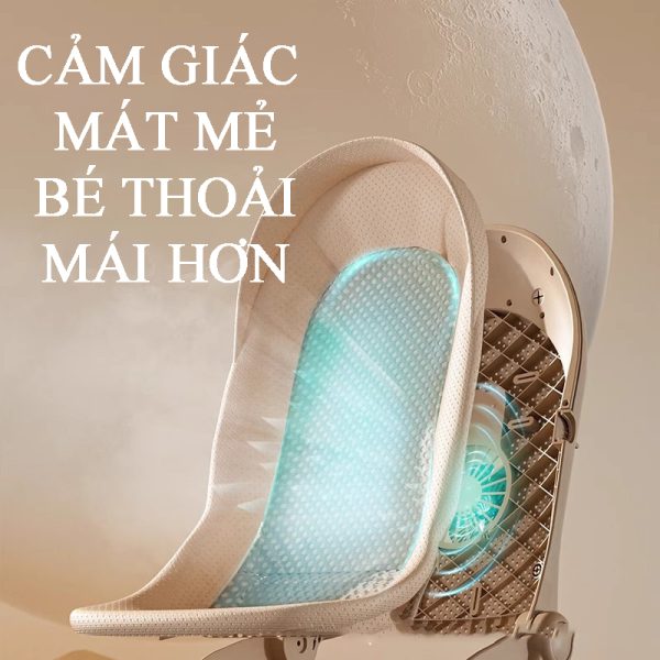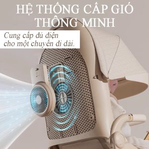 – Xe Đẩy Điều Hòa VINNG 2024 với quạt gió thông minh cùng lớp lưới thoáng khí giúp lưng bé không còn nóng bí đổ mồ hôi, hạn chế rôm sảy